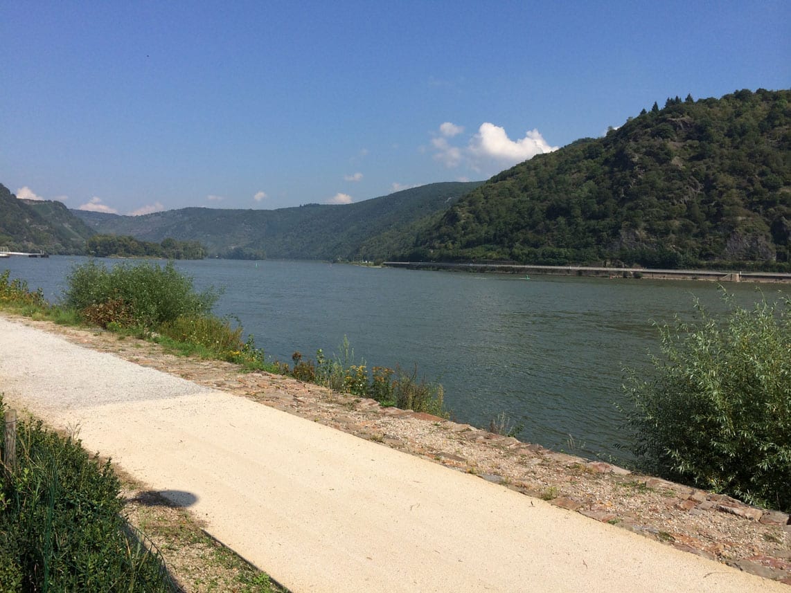 Once we turned into the stellplatz, we could see it was full, so we had to park up on the campsite beside it. Many of the Stellplätze in Germany are located alongside campsites. We were pleased that this one had one, as we needed to de-stress. Once we got set up on the site, which cost us 19.50 euros instead of 10 euros for the stellplatz, we went up to the bar/restaurant for a drink and ended up having a burger and chips to save cooking. I must admit it was the best burger and chips we have ever had. We sat overlooking the Rhine, taking in the scenery on the balcony of the restaurant, and it didn’t take long to start relaxing.