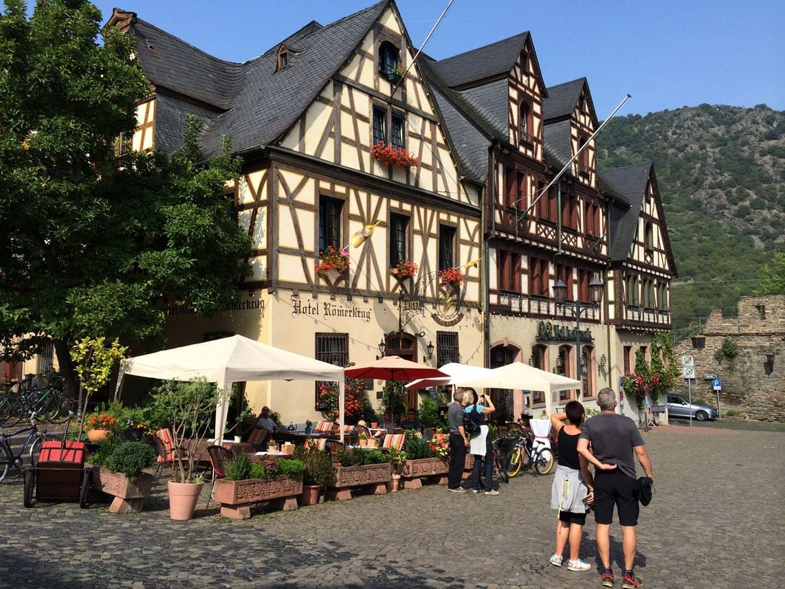 The campsite was fantastic as we were parked up overlooking the Rhine, watching the various boats going up and downstream. It was fascinating watching the River Cruise Ships. Above us, perched on the hill, was Stahleck Castle, which is today a youth hostel. Just a short 5-minute walk along the river was the landing stop for the River Cruises and the beautiful little medieval town of Bacharach.