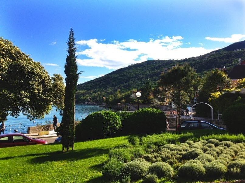 Whenever we visit the Istrian region of Croatia, we always try to pop into Lovran. It has a lush green landscape with plenty of flowering gardens, several baroque houses on the town square, and a medieval tower. But the main reason we visit is for the wonderful walk along the Lungomare. More about that later.
