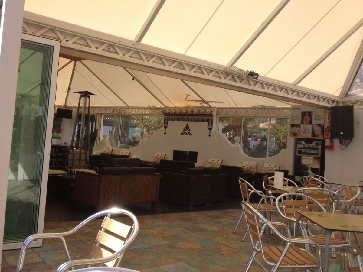 One thing we have noticed about a lot of sites in Spain is that they have a lot of shade which they use in the summer. The shade is provided by the framework (a bit like the framework used on Market stalls) with a tarpaulin over the top that can be pulled across if needed.
