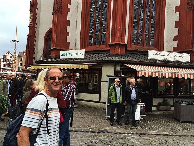 Saturday morning was grey and dismal again but we were determined to get out. Wurzburg was a 6-mile cycle ride along the river cycle path.  Five minutes down the cycle track we felt the first spots of rain and before going any further we stopped to pull our rain jackets on.  Ray wanted to turn back but I was determined that we needed the exercise. Normally it would be me wanting to go back as the drizzle wasn’t doing my hair any favours. Anyone that knows me knows that I worry about going out in the rain because my hair just turns into a frizz ball but I purposely hadn’t washed it that morning so I really wasn’t so bothered.