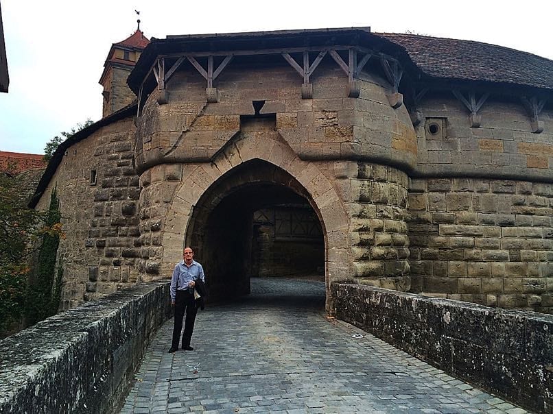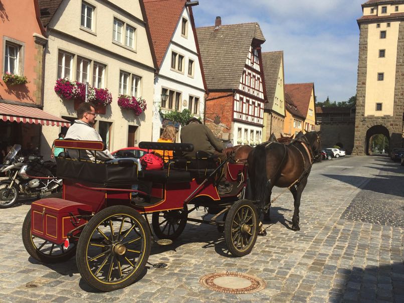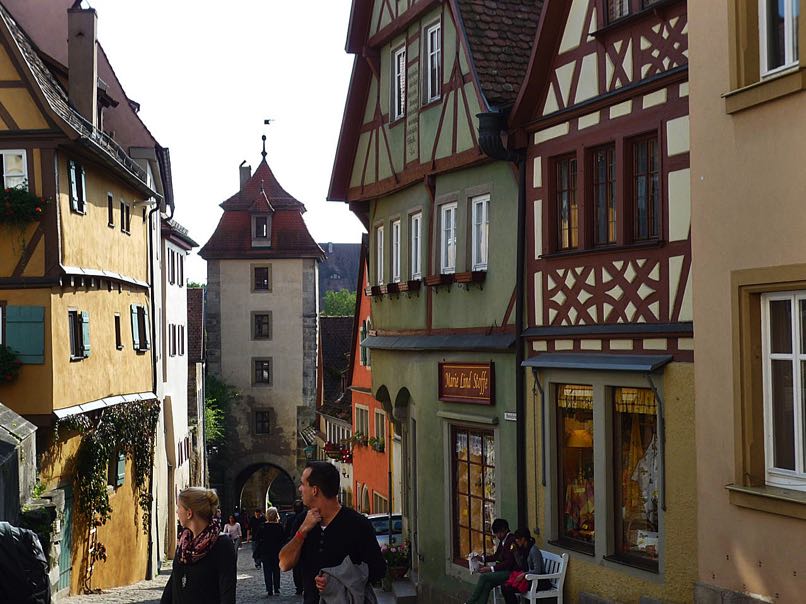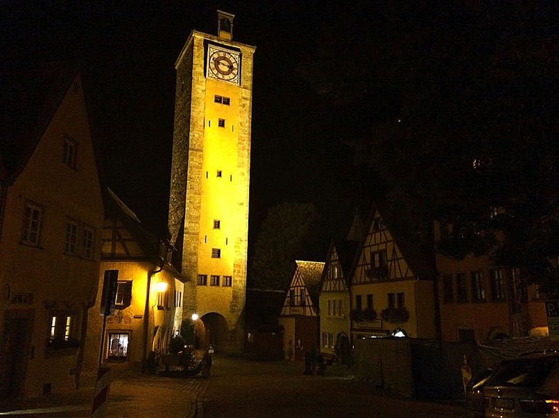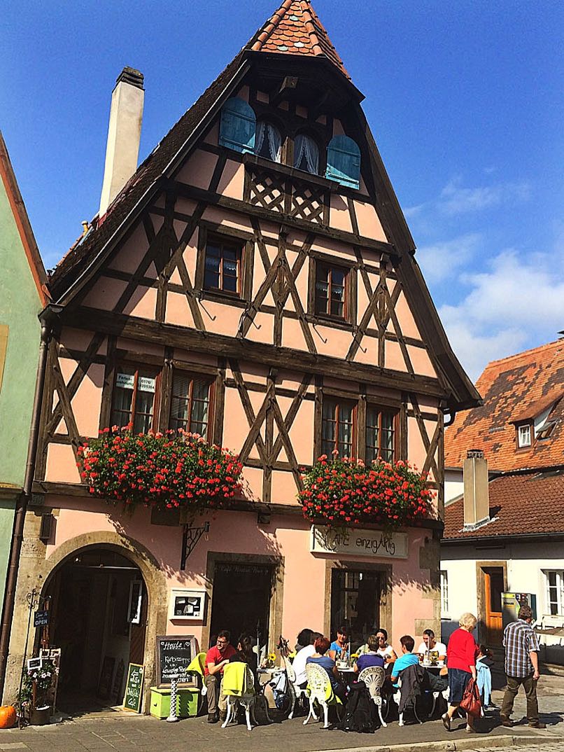 We walked back into Rothenburg in the evening to enjoy the towns charming atmosphere. Many of the tourists had moved back onto their tour buses by then. We were eating a delicious meal sitting outside one of the restaurants when the Night Watchman walked past with a crowd of tourists behind him. What a great way to learn the city’s history.
