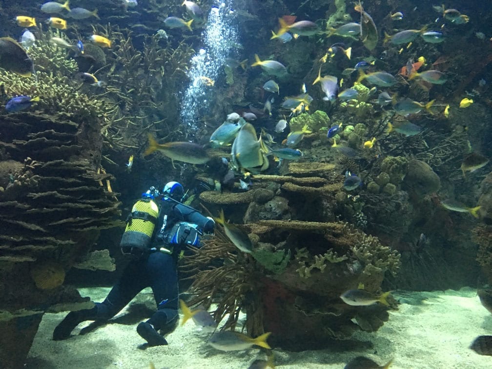 - L’Oceanografic which is basically a small version of Sea World. It was really worth visiting although not cheap at 23E each. If you buy tickets for 2 or more then the price goes down quite a bit. L’Oceanografic has the largest glass water tunnel in Europe to walk through directly underneath the massive fish tank, with sharks swimming just a few metres from our faces.
