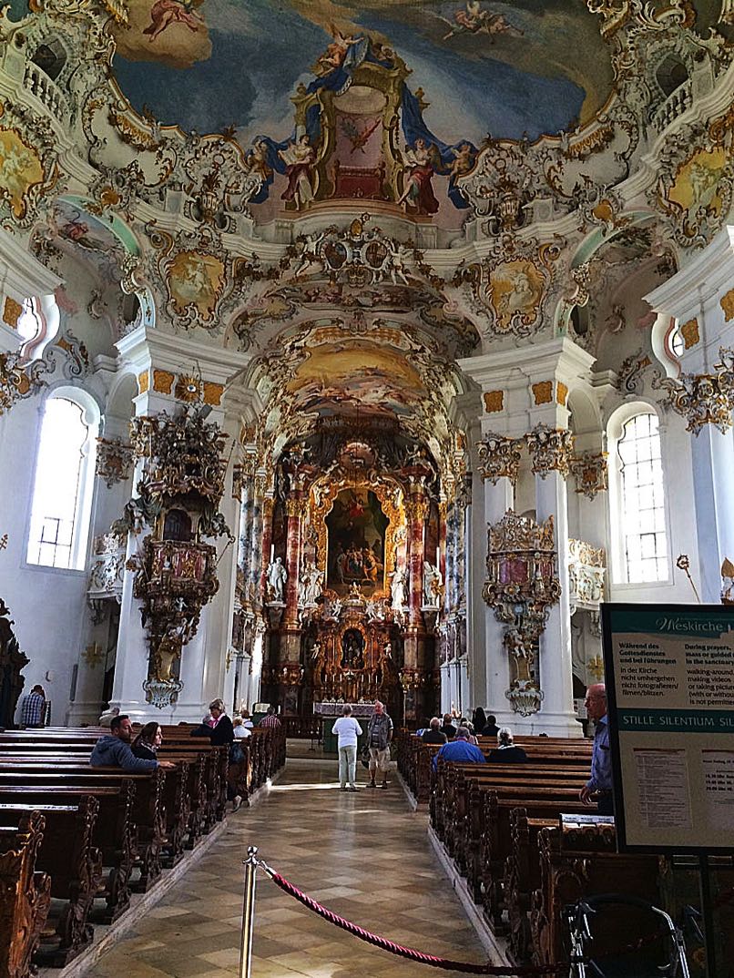 The next day, we carried on our trip along the Romantic Road a little way. We are nearing the end, but there are still a couple of highlights to see. The first is the pilgrimage church of Wieskirch (“Church in the Meadow”), located near the small town of Steingaden.