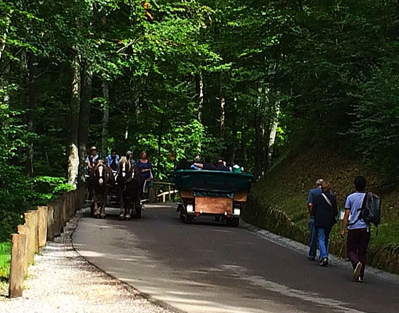It looked like a steep hill to climb to get to the castle, so we waited for a while in a long queue for the horse and cart. It was hot, and there was no shade, so after waiting a short time, we decided to walk up, as the path looked quite shady. The first part of the hill was hard going for someone as unfit as I am, but once we got going, it wasn’t as bad. I only needed a little rest on a bench at the side of the road. The walk up took about half an hour. The horse and cart do not go all the way up anyway, and that stops 10 minutes walk away from the castle entrance. We did it around the wrong way, though, and got the horse and cart back down the hill just for the experience and because by then there was virtually no queue.